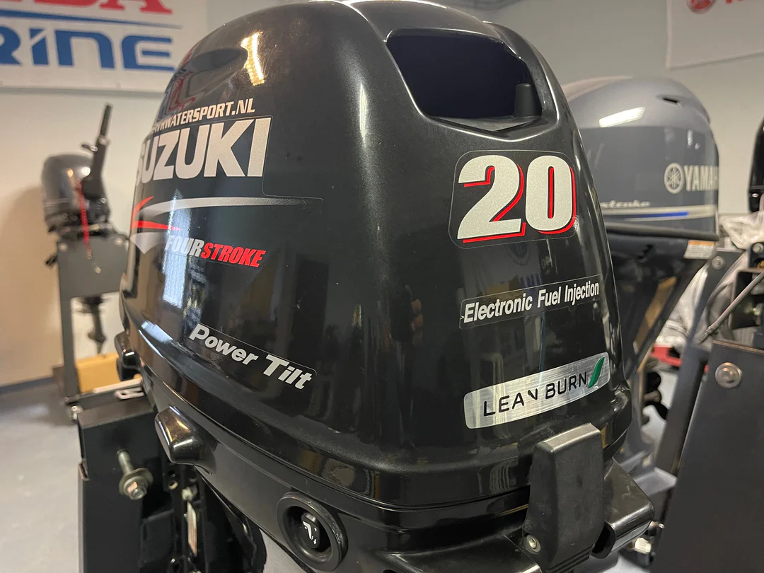 Suzuki 20 hp EFI (ELECTRONIC FUEL INJECTION ) 4-stroke, 2-cylinder electric start with remote control (side switch box) and electric power tilt.