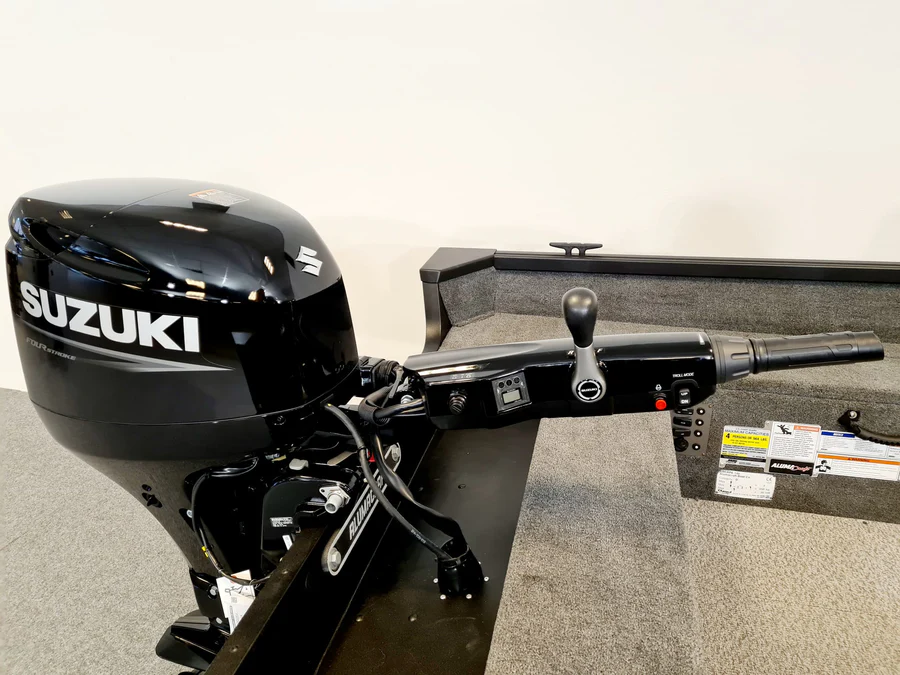 New Suzuki 60 HP (High Thrust) outboard engine with tiller handle steering with extra high discount.